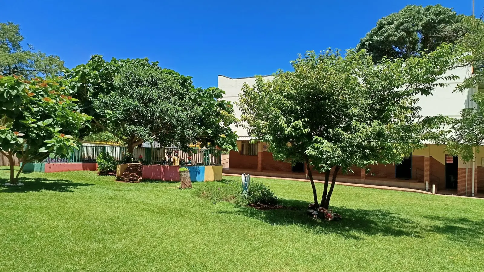 Entre árvores, gramados e áreas verdes, as crianças têm a oportunidade de explorar, brincar e aprender de forma livre e segura.